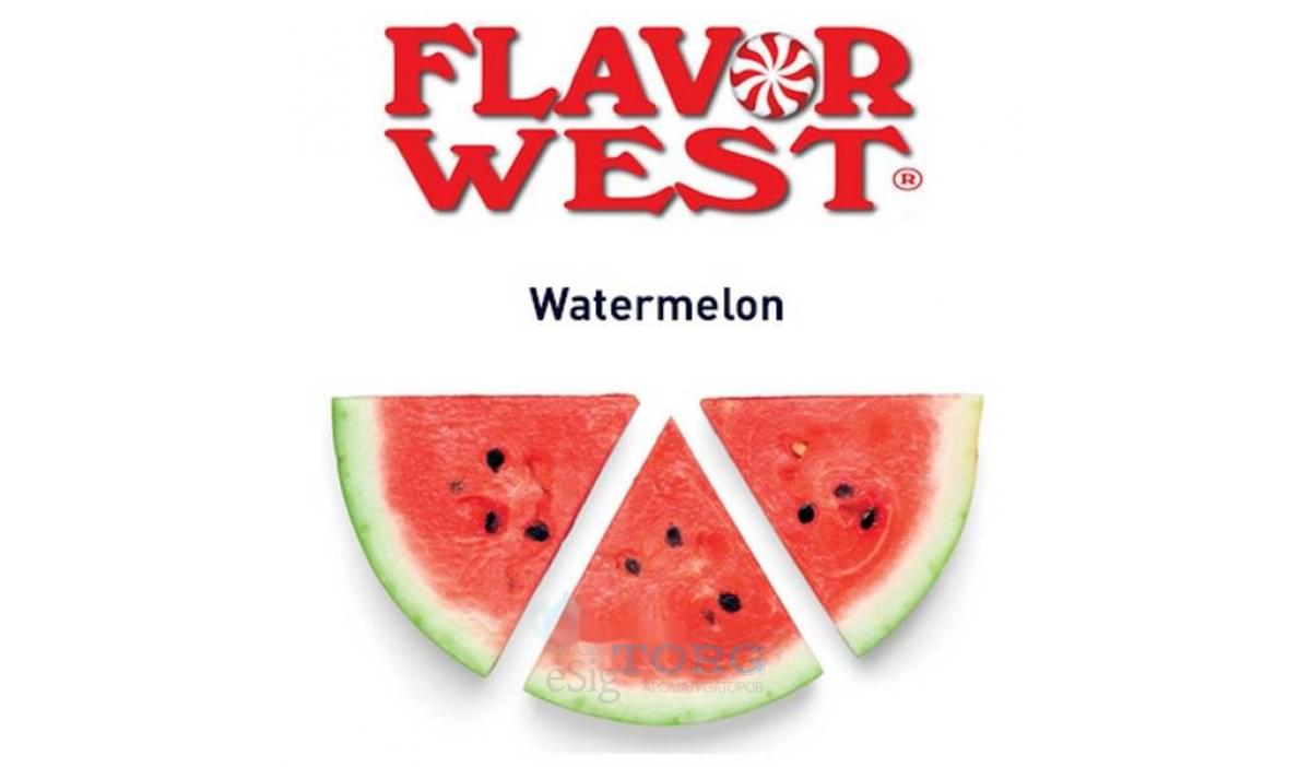 Сочный и яркий вкус арбуза — Watermelon от компании Flavor West. Это один из самых популярных вкусов среди рецептеров, поскольку он может использоваться как в сольном виде, так и в композициях с другими фруктами, ягодами, алкогольными и табачными концентратами, десертами и т. д. Сфера применения Watermelon — самая широкая. Продукт фабрики FW содержит 0,306% ацетоина. Рекомендуемая концентрация — около 10% в соло и 4-5% в миксах
