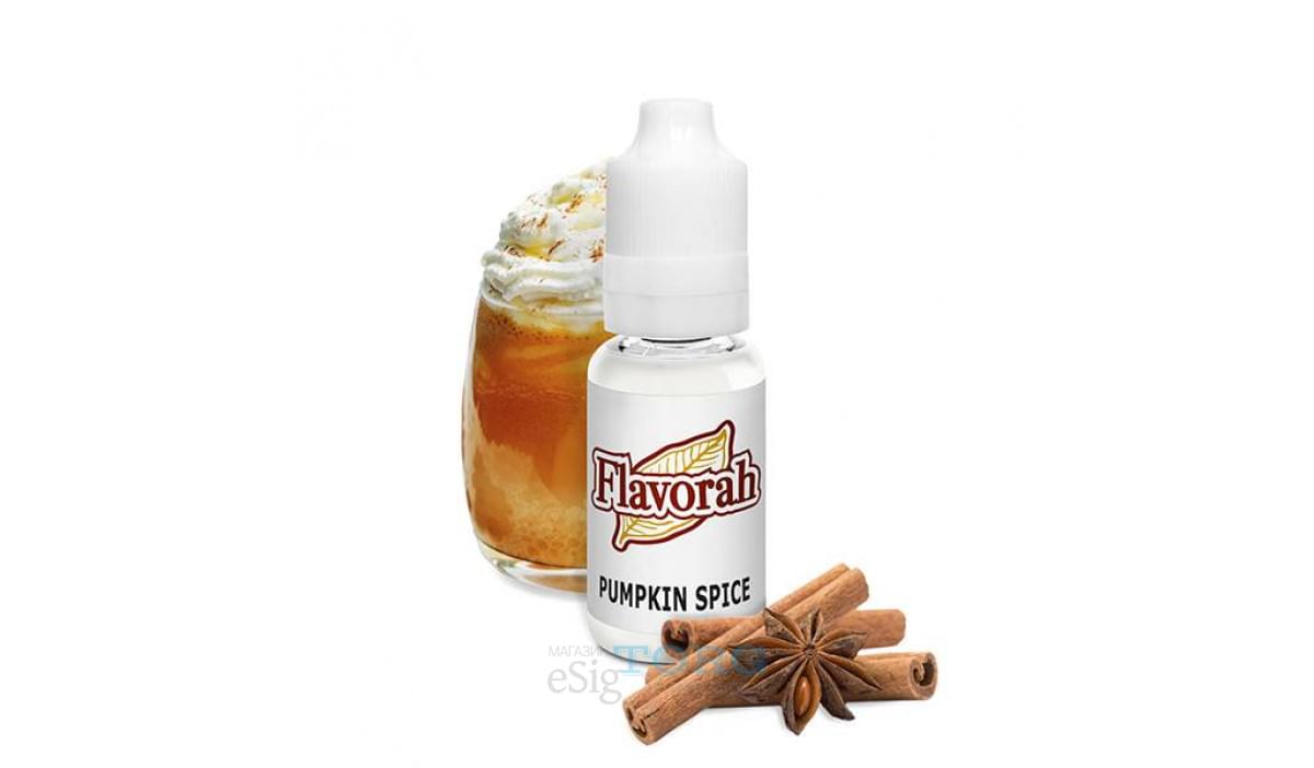 Pumpkin Spice — пряная тыква. Ароматизатор рекомендуется использовать как добавку к различным вкусам. Тыквенная пряность хорошо дополняет выпечку, карамель, крем и т. д. При смешиваяании Pumpkin Spice Flavorah следует придерживаться минимальной дозировки: от 1 до 1,7% (соло) и 0,2-1% (в рецептах).